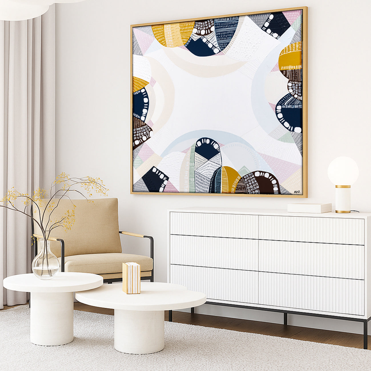 Melbourne-based with a background in Art, Design & Photography, Ani’s work transforms spaces with soft pinks, calming blues, and warm mustards.