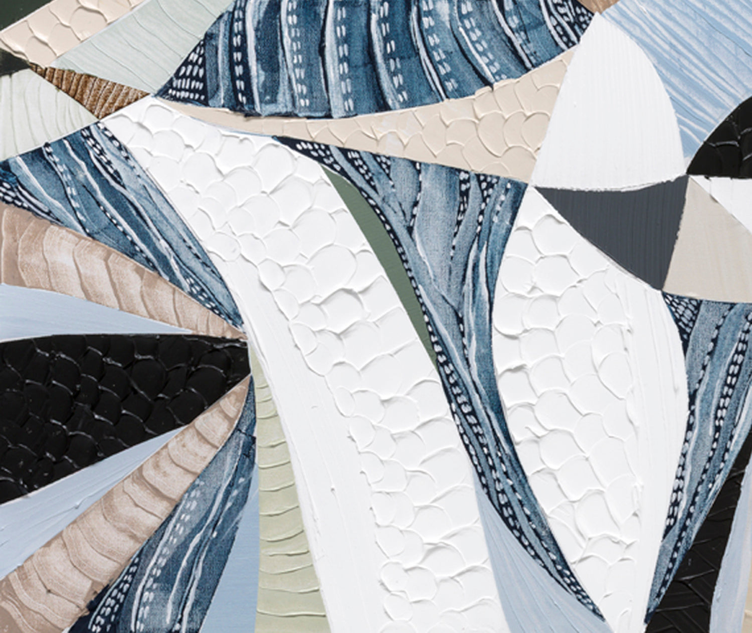Featured in Grand Designs, Home Beautiful, Art Edit, and Herald Sun, her asymmetrical style captures Australia’s natural essence through acrylic and mixed media.