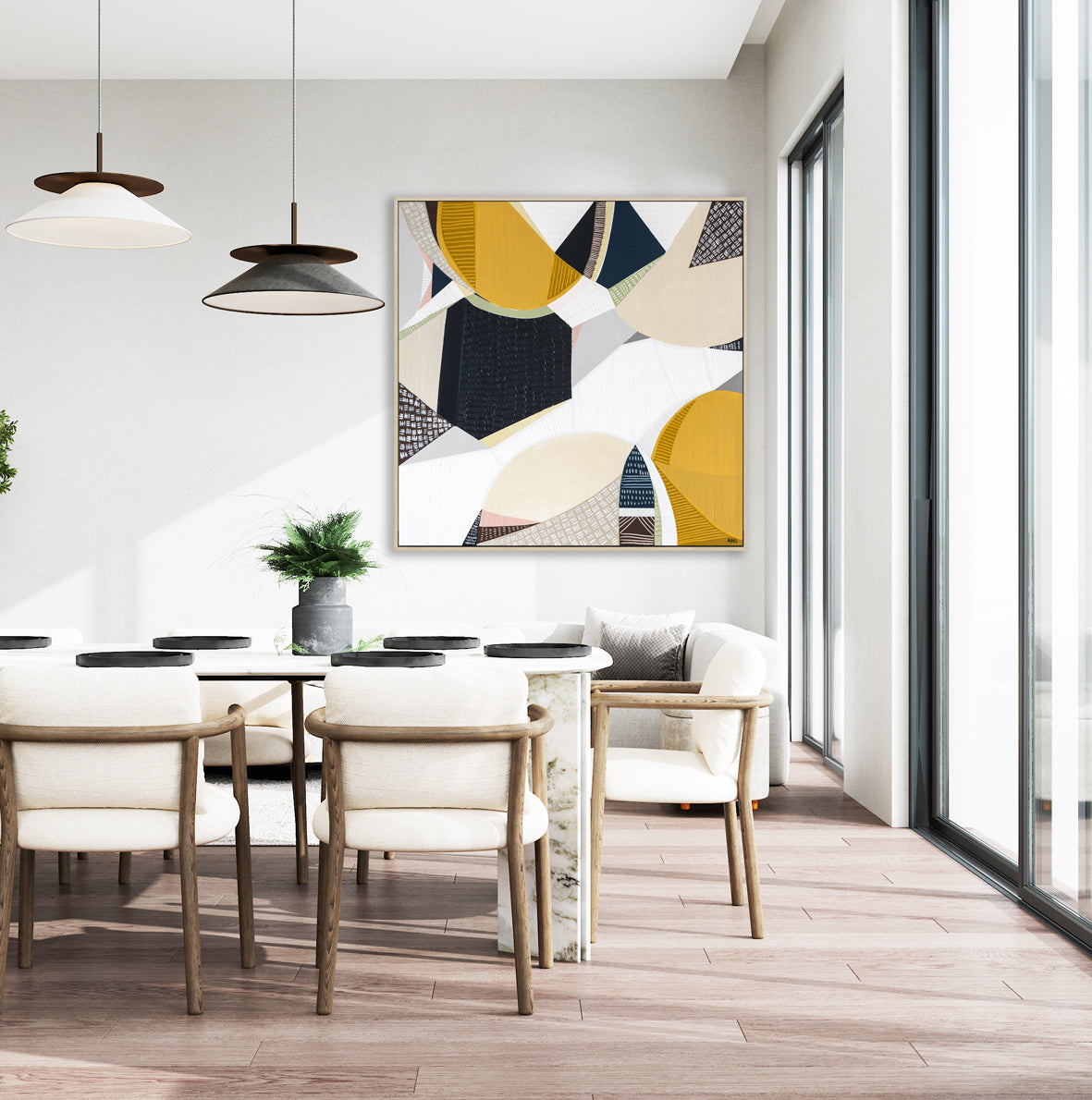 Featured in Grand Designs, Home Beautiful, Art Edit, and Herald Sun, her asymmetrical style captures Australia’s natural essence through acrylic and mixed media.