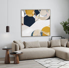 Painting size 104cm x 104cm framing options in Tasmanian Oak, black, or white.