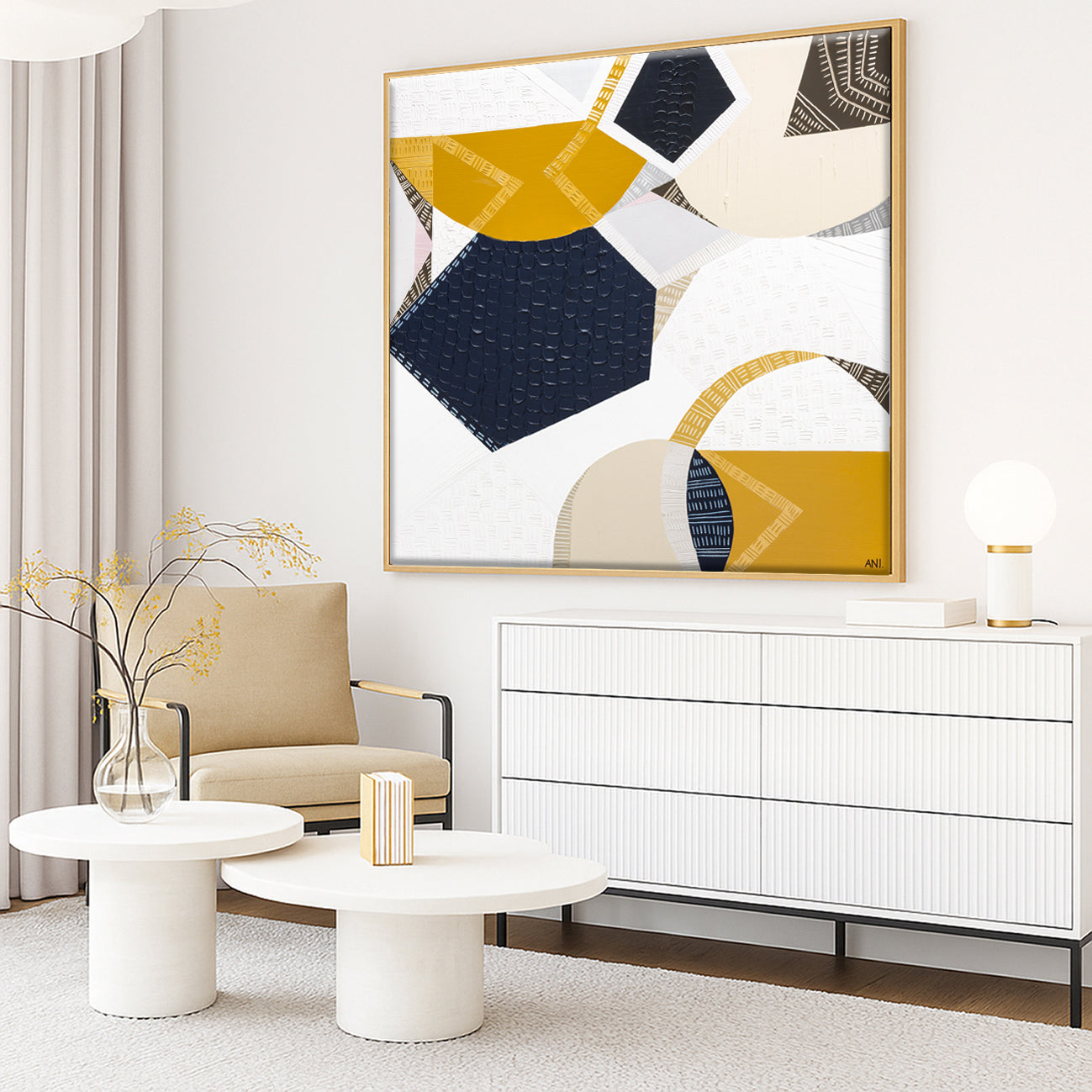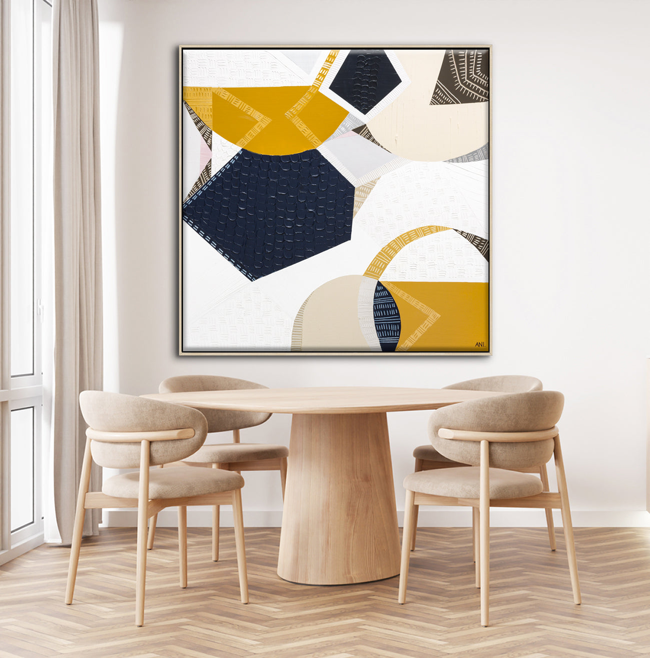 Inspired by the wide-open beauty of the Australian Outback, Outback Adventures is an original abstract painting by Melbourne-based artist Ani Ipradjian. Earthy mustard tones and ocean blues reflect the rich land and coastal beauty captured during Ani’s cross-country train journey from Melbourne to Perth. This piece celebrates Australia's natural essence through bold colour and textured form—perfect for collectors, decorators, and lovers of contemporary Australian art.