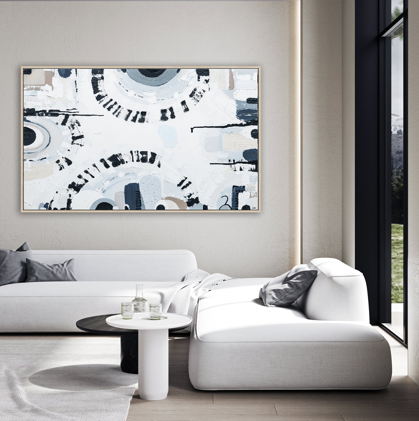 Stretched canvas with timber float frame (add 3cm each side for frame).