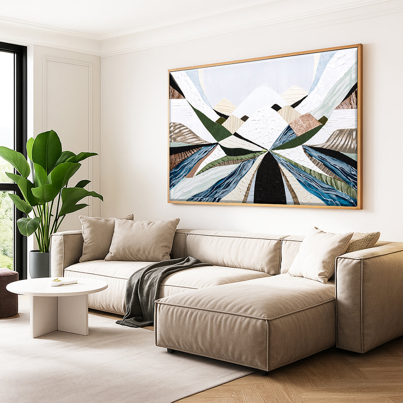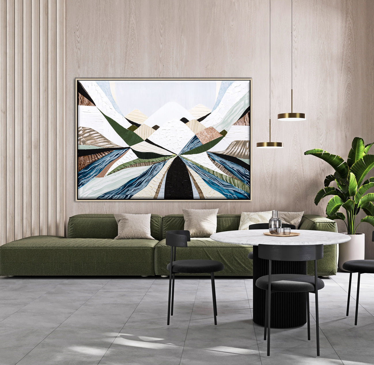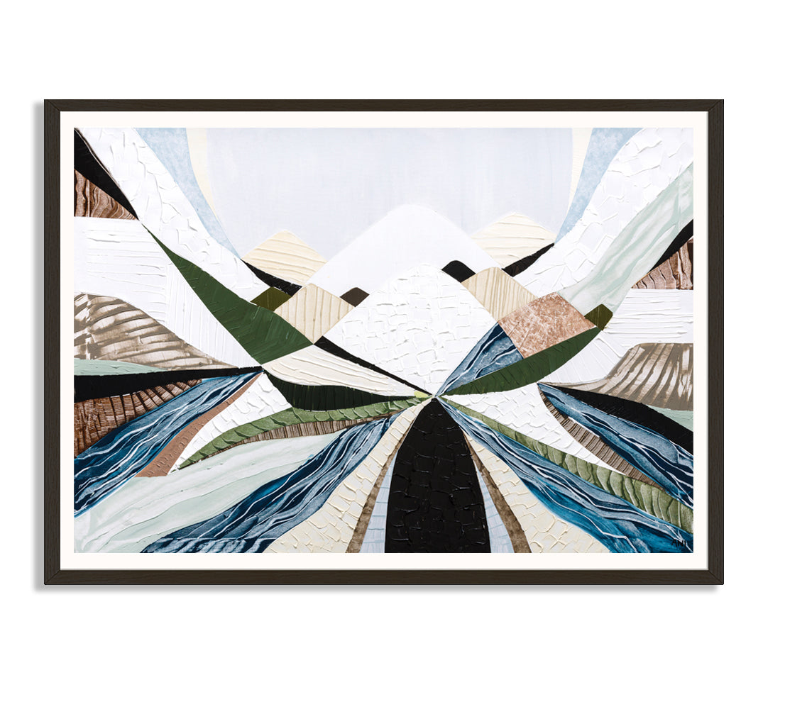 Celebrate the beauty and grandeur of Australia’s most iconic mountain range with Great Dividing Ranges—a striking abstract landscape print by Melbourne-based artist Ani Ipradjian. Spanning over 3,700km through Queensland, New South Wales, and Victoria, the Great Dividing Range is brought to life in earthy browns, calming sage greens, and rich layered textures that reflect the native bushland and diverse terrain.