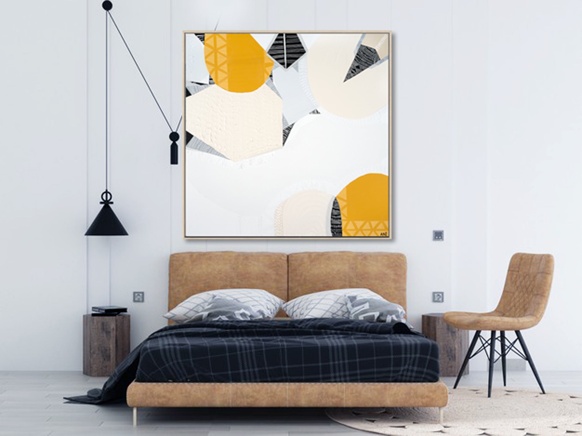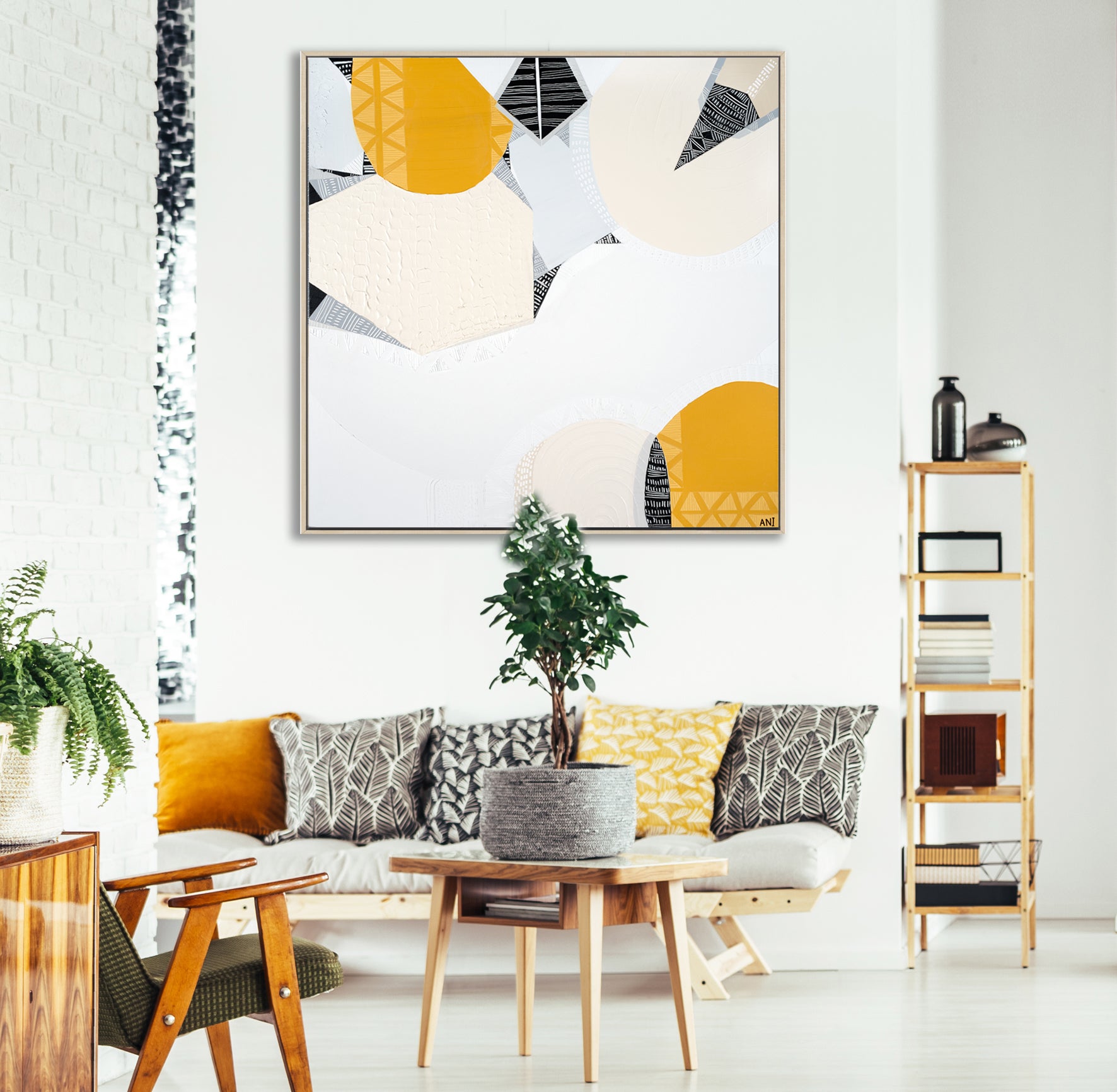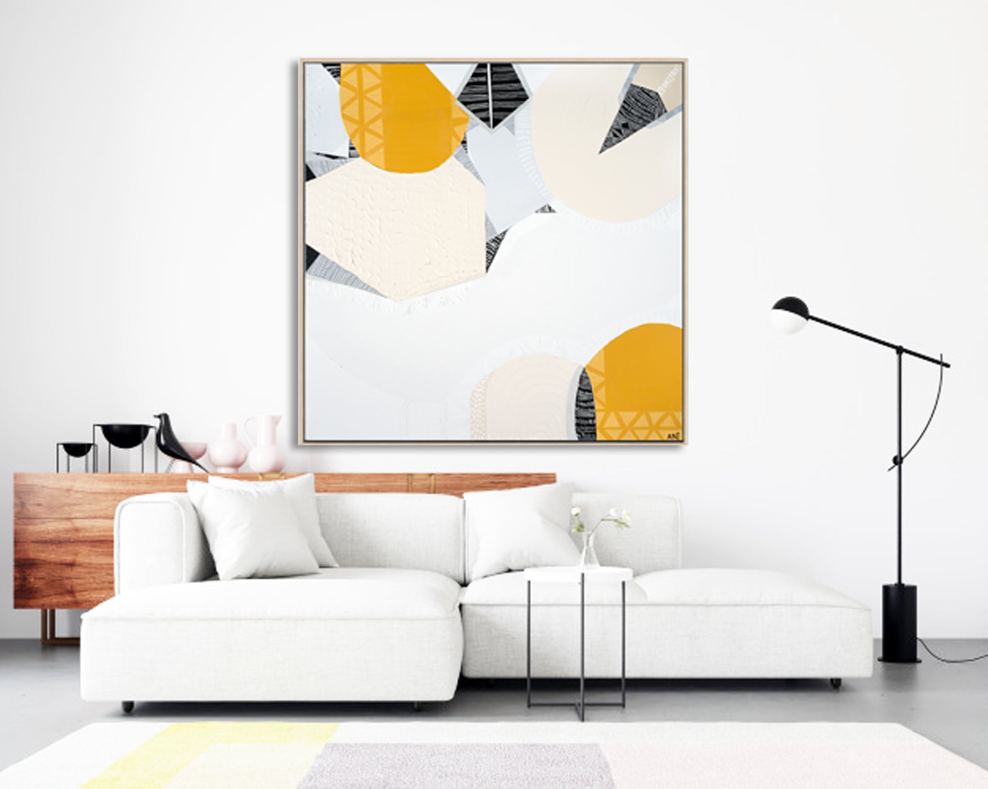 Featured in Grand Designs, Home Beautiful, Art Edit, and Herald Sun, her asymmetrical style captures Australia’s natural essence through acrylic and mixed media.