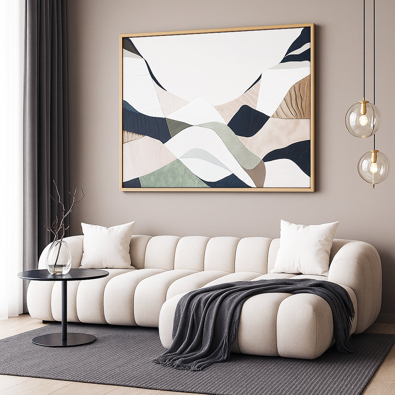 Featured in Grand Designs, Home Beautiful, Art Edit, and Herald Sun, her asymmetrical style captures Australia’s natural essence through acrylic and mixed media.
