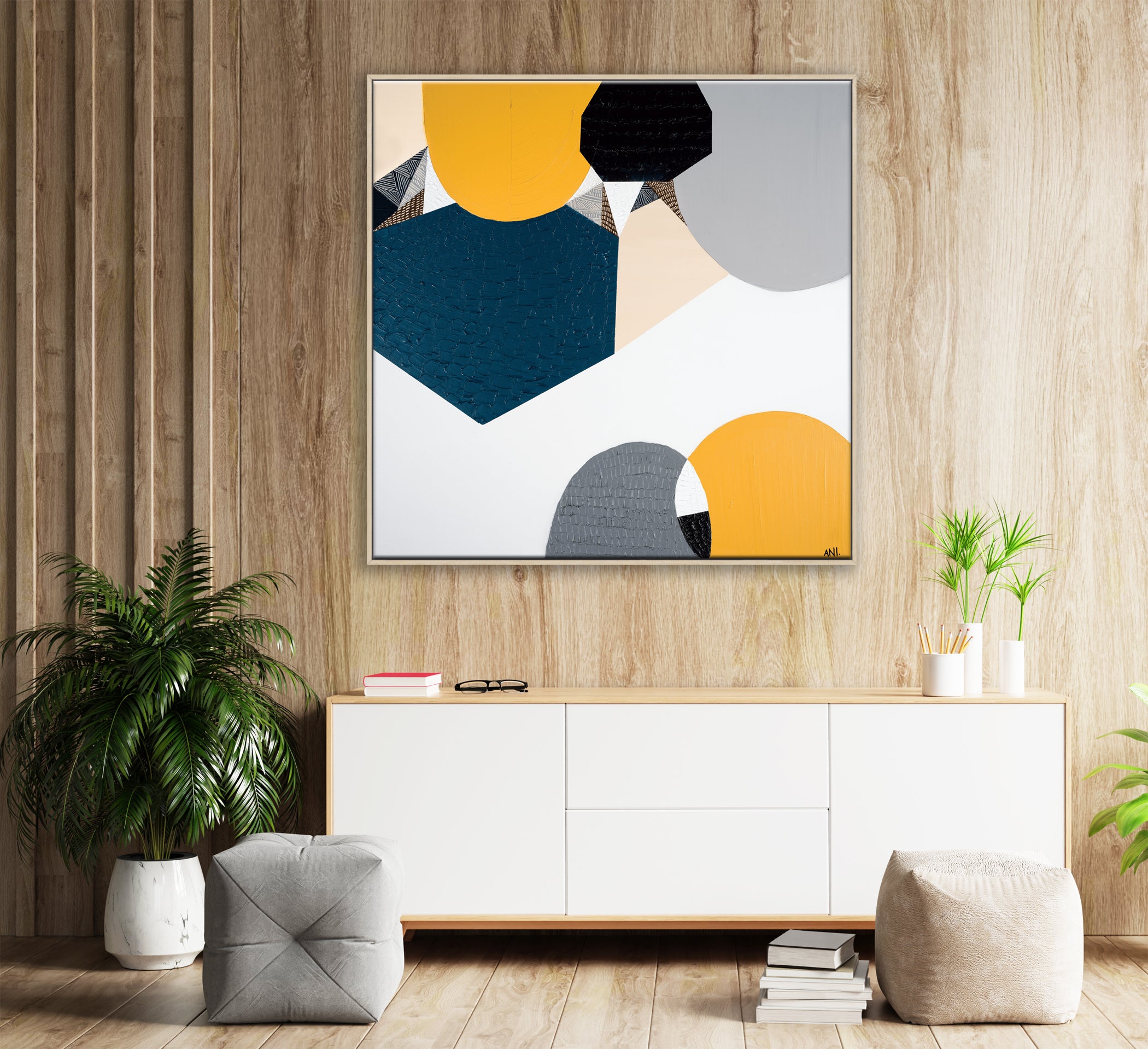 Ani Ipradjian, a Melbourne-based artist, is known for her unique asymmetrical abstract style inspired by nature and cityscapes. Her work, featuring luscious textures and vibrant colors, captures Australia’s native flora and landscapes. With a Diploma in Art and Design, Graphic Design, and Photography, Ani combines acrylic painting with mixed media. She predominantly uses soft pinks, calming blues, and warm mustards. Ani's art brings any room to life.