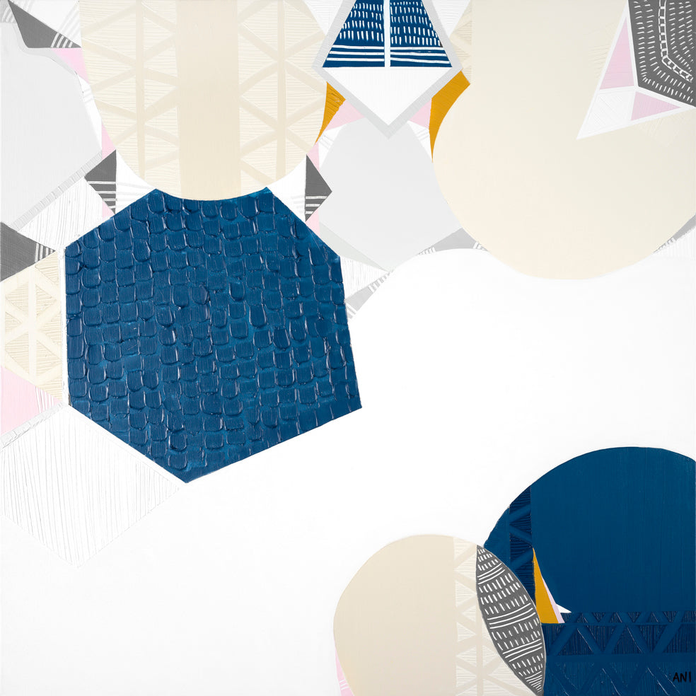 Ani Ipradjian, a Melbourne-based artist, is known for her unique asymmetrical abstract style inspired by nature and cityscapes. Her work, featuring luscious textures and vibrant colors, captures Australia’s native flora and landscapes. With a Diploma in Art and Design, Graphic Design, and Photography, Ani combines acrylic painting with mixed media. She predominantly uses soft pinks, calming blues, and warm mustards. Ani's art brings any room to life.