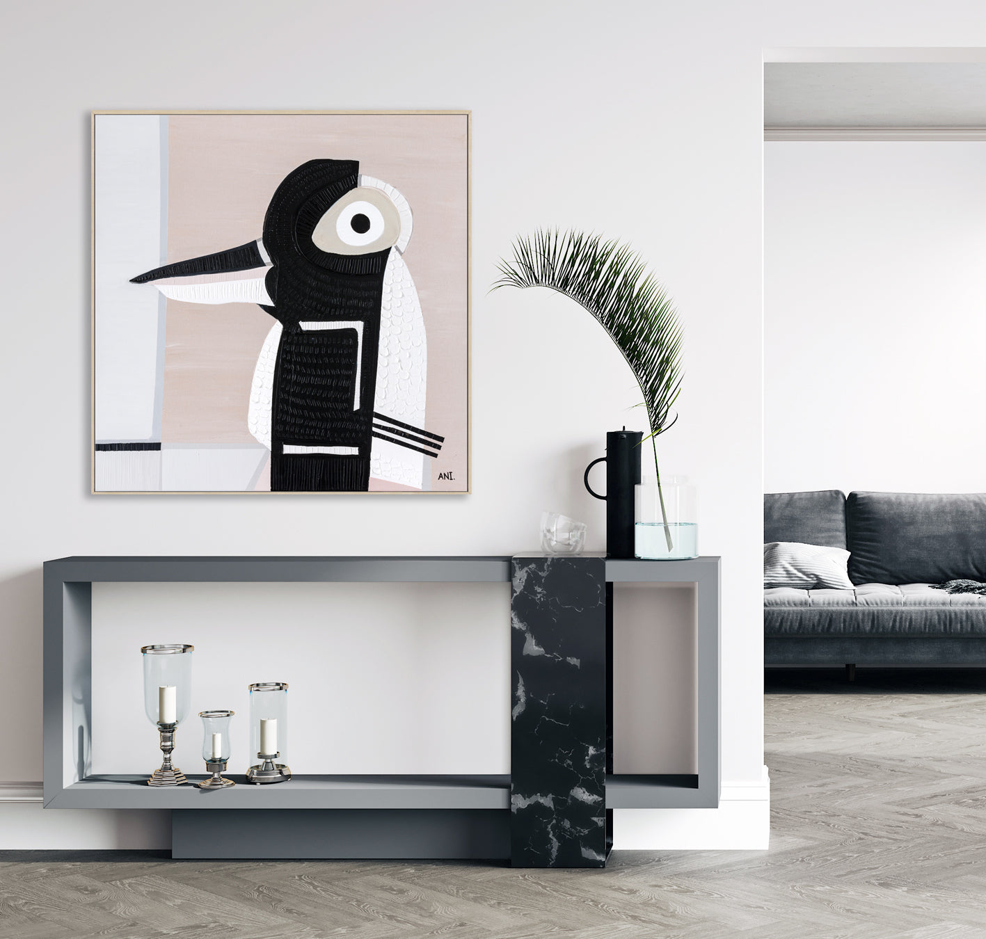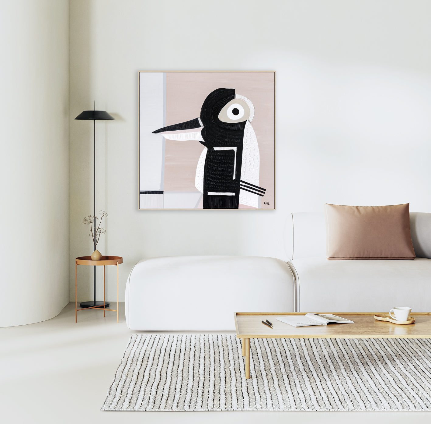 Ani Ipradjian, a Melbourne-based artist, is known for her unique asymmetrical abstract style inspired by nature and cityscapes. Her work, featuring luscious textures and vibrant colors, captures Australia’s native flora and landscapes. With a Diploma in Art and Design, Graphic Design, and Photography, Ani combines acrylic painting with mixed media. She predominantly uses soft pinks, calming blues, and warm mustards. Ani's art brings any room to life.