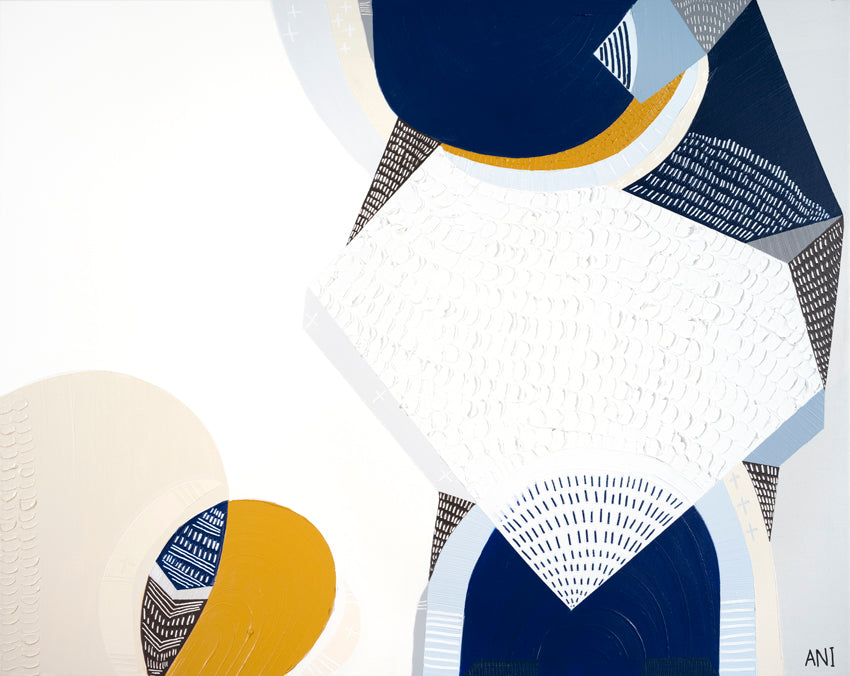 Ani Ipradjian, a Melbourne-based artist, is known for her unique asymmetrical abstract style inspired by nature and cityscapes. Her work, featuring luscious textures and vibrant colors, captures Australia’s native flora and landscapes. With a Diploma in Art and Design, Graphic Design, and Photography, Ani combines acrylic painting with mixed media. She predominantly uses soft pinks, calming blues, and warm mustards. Ani's art brings any room to life.