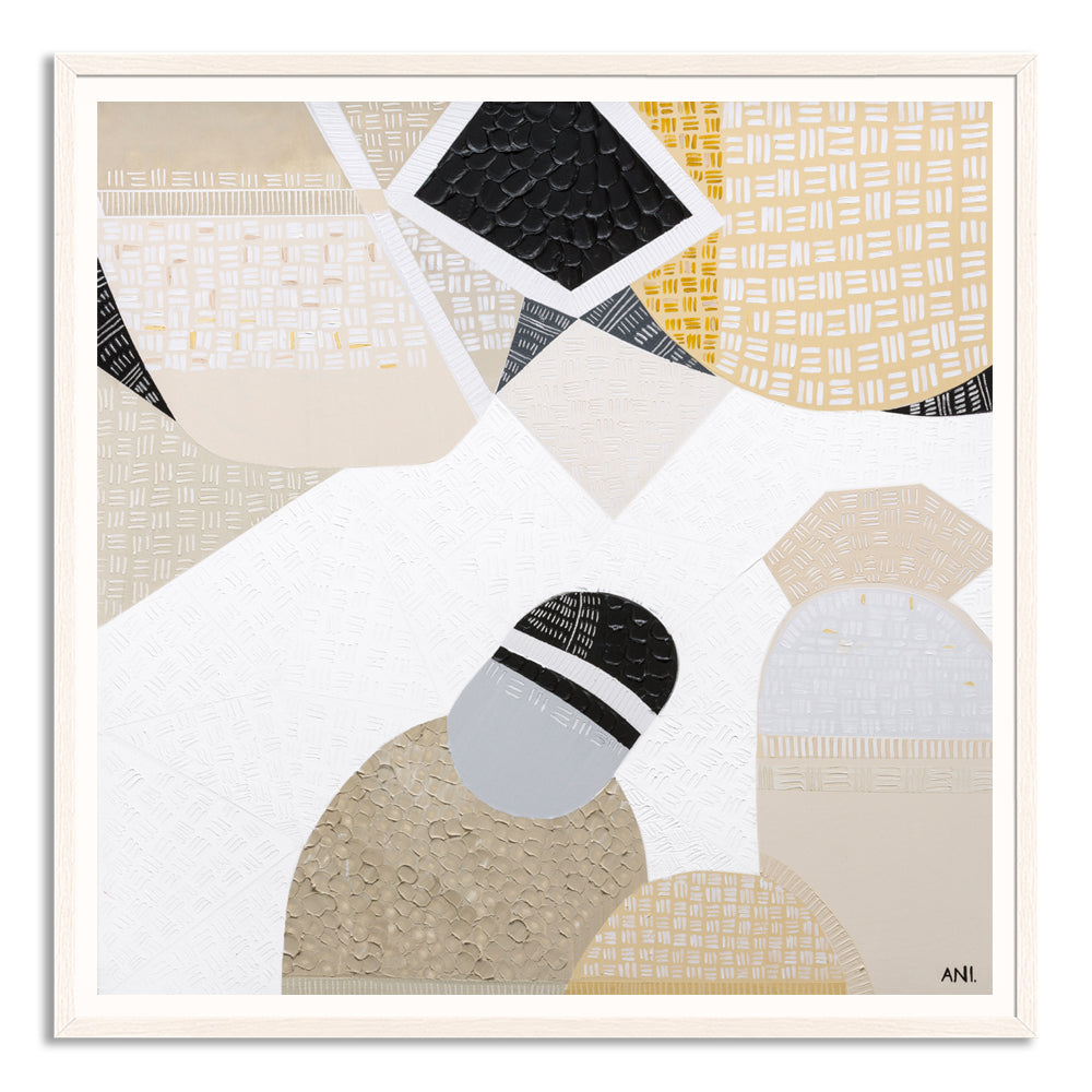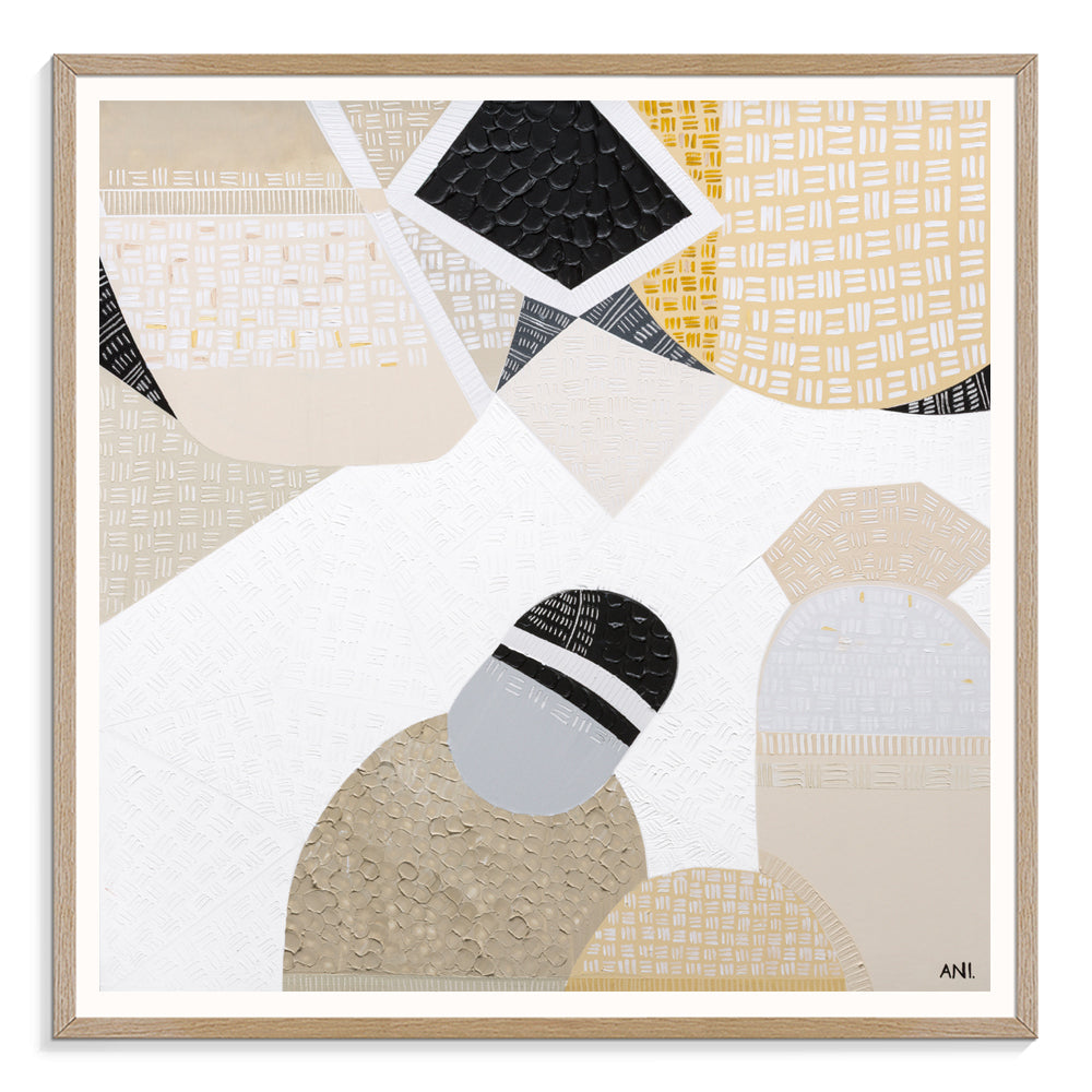 Bring the essence of Australia’s rugged landscape into your home with Australian Outback Road 4, a vibrant Australian landscape art print by Melbourne-based artist Ani Ipradjian. Inspired by Ani’s train journey from Melbourne to Perth, this artwork captures the earthy mustard tones of the outback and cool ocean blues of the coast, blending them into a textured abstract composition.